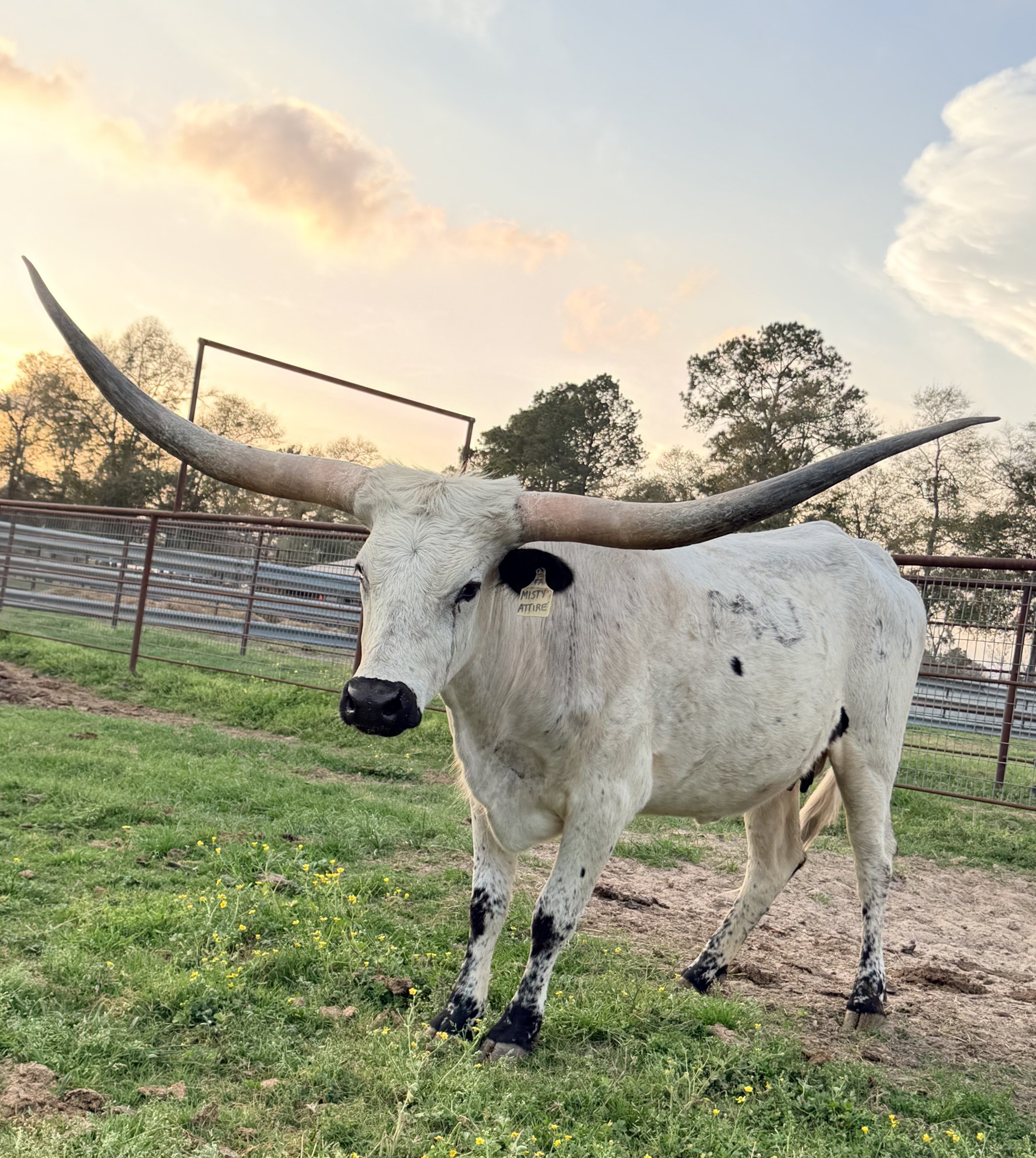 ***SOLD***Stunning Black and White / Blue Roan female with a great horn set and an elite, proven pedigree. She is double bred Tempter, sired by Formal Attire, stacking the iconic 100”+ TTT 402 cow Horseshoe J Example, with Field of Pearls appearing twice on the bottom side. Her FULL sister sold for $18,000 at the 2024 Horn Showcase. She is bred for a late summer 2026 calf to an exciting young bull with serious genetic firepower, BRAZOS TAURUS. Three paternal sisters to Taurus have sold for nearly $160,000, and he is sired by a 90”+ TTT giant, Brazos Tuff Cowboy. His pedigree is stacked, double bred Jamakizm’s Alphie (96” TTT) and loaded with industry legends including Cowboy Tuff Chex (107”+ TTT), BL Rio Catchit (101”+ TTT), Tari Graves FM49, Field of Pearls, and PCC Rim Rock. This mating represents a rare opportunity to add incredible bloodlines to any herd. We are keeping her heifer as a replacement.