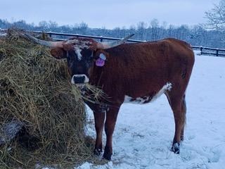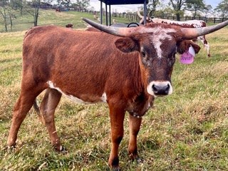Granddaughter to the over 94" TTT CV Casanova's Magnum, going to the $100,000 CV Cowboy Casanova bull. Her frosted face and sweet disposition along with her great pedigree make her a standout in the pasture with great potential to be an amazing foundation cow to bring your program to the next level! Her sire, CATCH, was superior bull in his class and first in TTT at the 2020 TLBAA Horn Showcase and 2021 Millennium Futurity Class 7 Champion, DNA Verified and AI registered.
