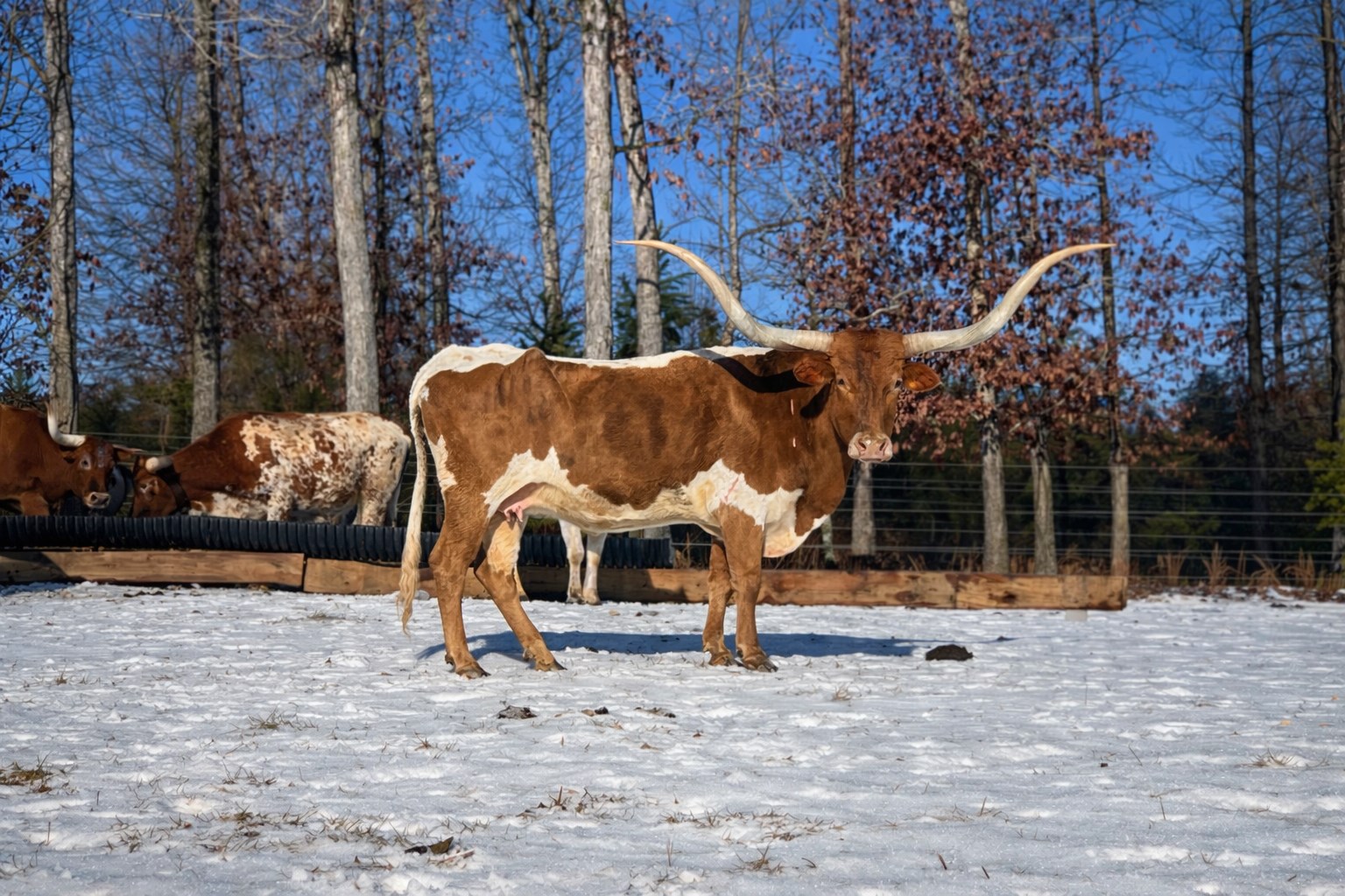 Becca’s Charm is a twisty handle-bar horned cow out of the famous JBM Becca II cow. The Becca family is outstanding. She is bred to the one and only son of 3S Danica; CENTURY 100, for her 2023 calf.